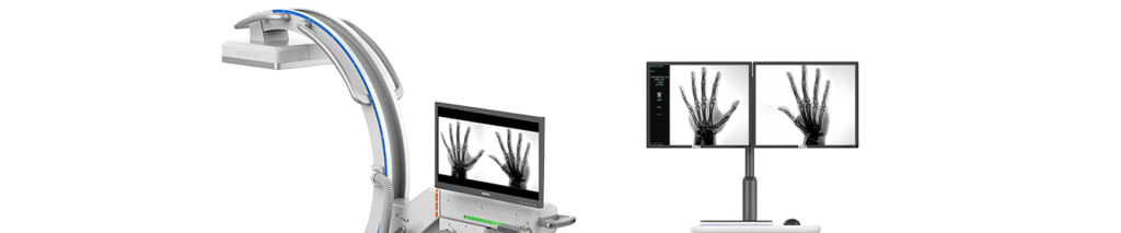 C-arm es un equipo médico avanzado utilizado principalmente en radiología y procedimientos quirúrgicos para obtener imágenes en tiempo real del interior del cuerpo. Este dispositivo recibe su nombre debido a su forma en “C”, la cual permite que el brazo pueda moverse en diferentes direcciones alrededor del paciente para capturar imágenes desde múltiples ángulos. Aquí hay una descripción más detallada del C-arm y sus usos: